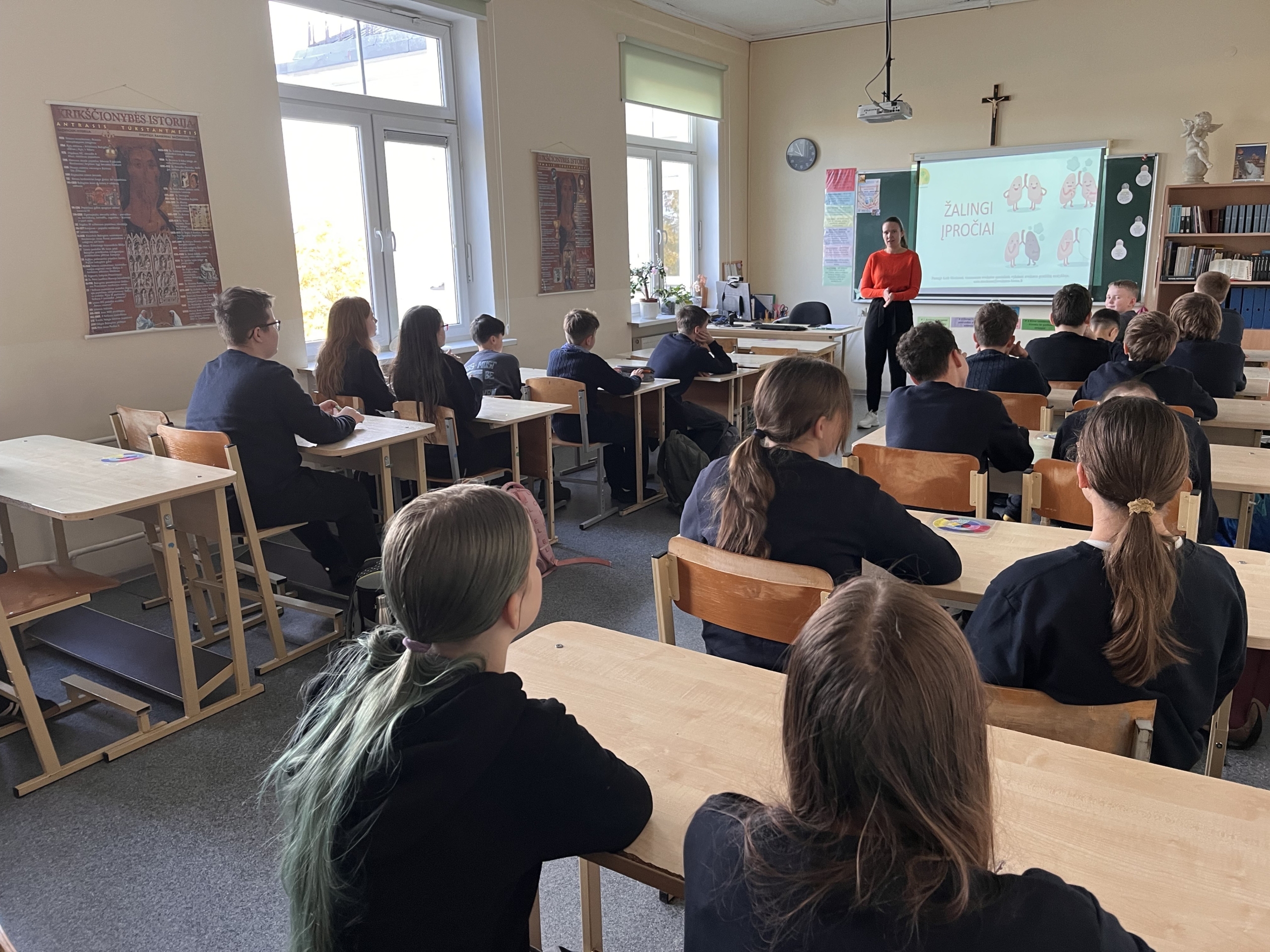 Spalio 29 dieną gimnazijoje , klasės valandėlės metu, visuomenės sveikatos priežiūros specialistė Aistė Mockienė, vedė įdomią ir informatyvią paskaitą 6 klasės mokiniams apie žalingus įpročius ir jų poveikį sveikatai.