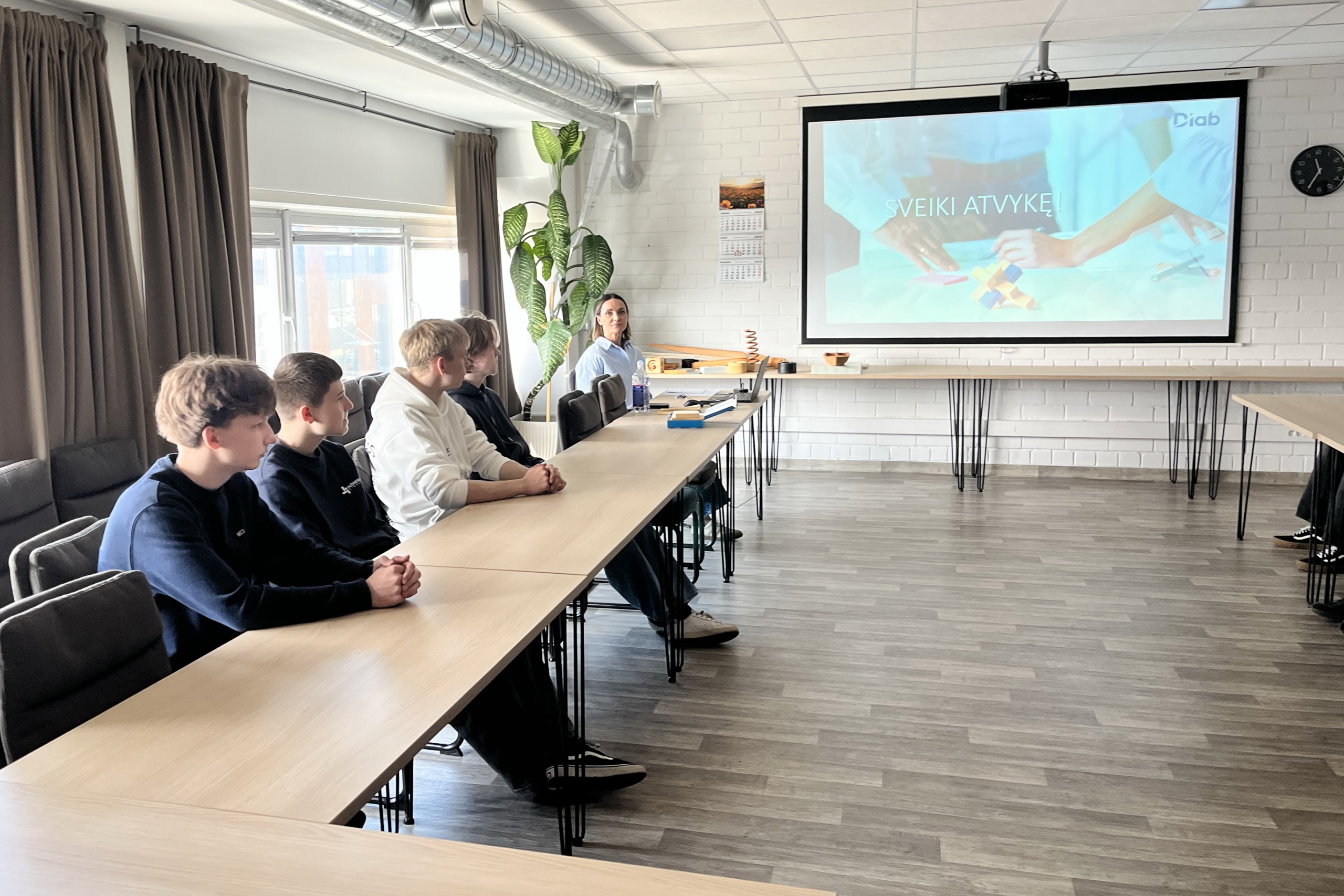 Dėkojame UAB „DIAB“ personalo vadybininkei Margaritai Ivanovaitei už šiltą gimnazistų priėmimą ir turiningą pažintį su įmonės veikla. Vizito metu mokiniai susipažino su gamybos procesais, modernia įranga, darbo organizavimu bei specialistų kasdienėmis užduotimis. Gimnazistai turėjo galimybę iš arti pamatyti, kaip kuriami produktai, kokios kompetencijos reikalingos skirtingoms profesijoms ir kokios karjeros galimybės atsiveria šiuolaikinėje įmonėje. Džiaugiamės prasmingu bendradarbiavimu ir vertinga patirtimi jaunimui.