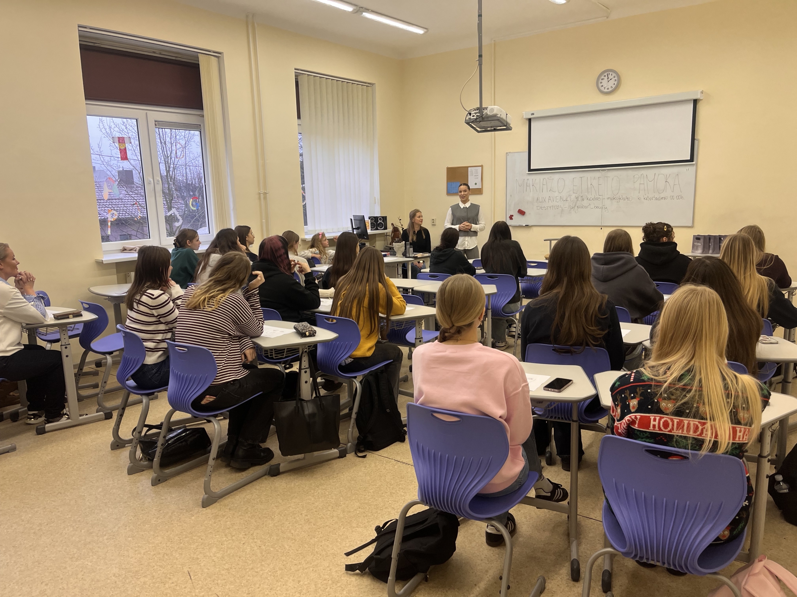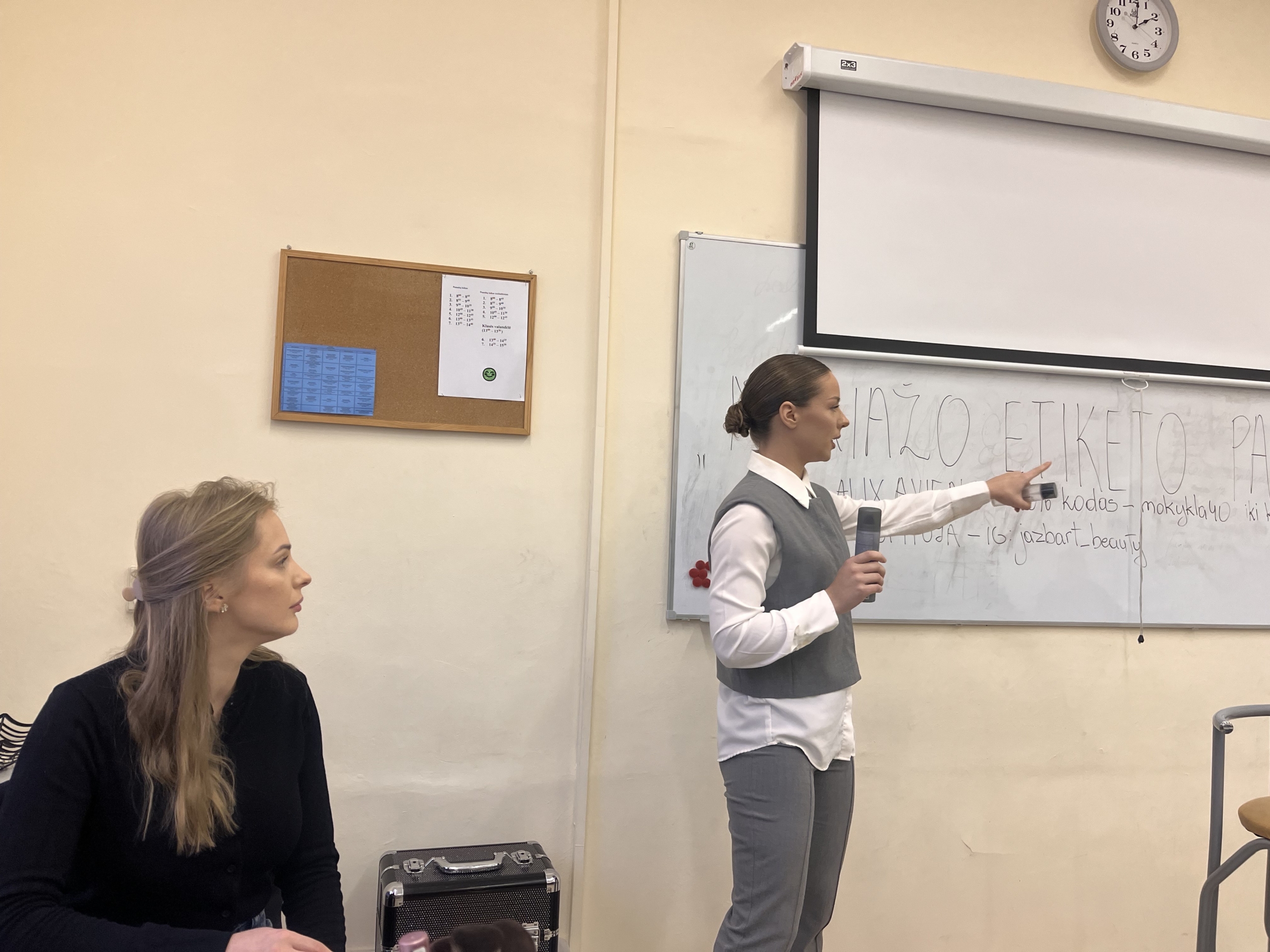 Susitikimo metu mokinės susipažino su pagrindinėmis odos priežiūros taisyklėmis, higienos svarba, makiažo produktų pasirinkimu, spalvų derinimo principais bei kasdienio makiažo etiketu. Lektorės pademonstravo, kaip išryškinti natūralų grožį, neperspaudžiant ir išlaikant subtilų įvaizdį.
