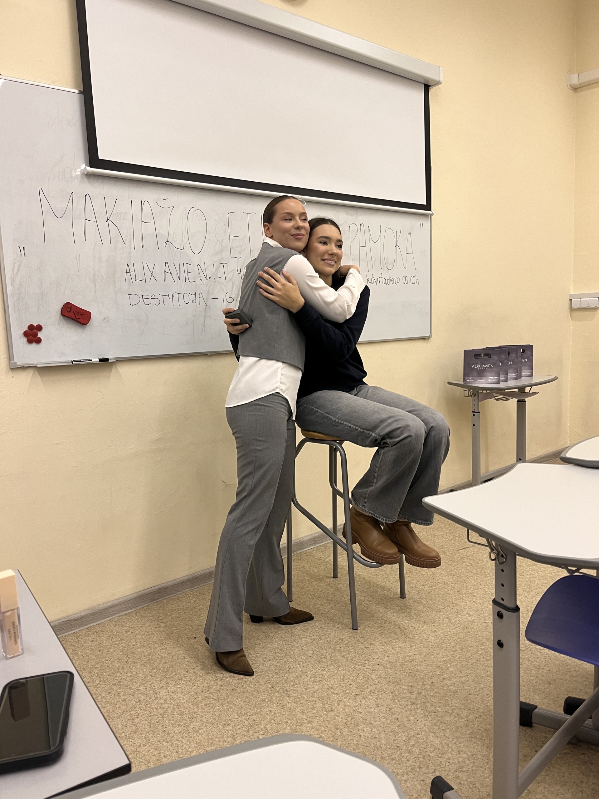 Gruodžio 2 dieną mūsų gimnazijoje viešėjo Alix Avien profesionalų komanda, mokiniams pristačiusi visažistės profesiją ir pravedusi įtraukiančias makiažo etiketo pamokas. Tai buvo puiki proga ne tik sužinoti apie kosmetikos pasaulio subtilybes, bet ir pamatyti, kaip gimsta profesionalus makiažas.