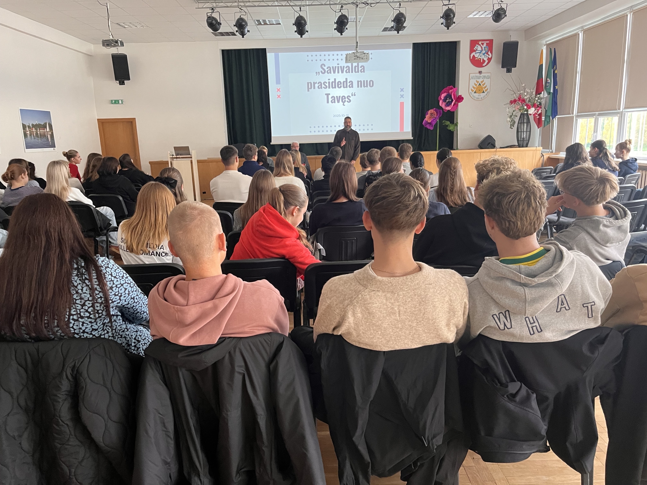 Spalio 16 dieną Saulėtekio gimnazijoje vyko įdomus ir prasmingas renginys – diskusija „Pažinkime savivaldą“, kurioje dalyvavo ir mūsų gimnazijos mokiniai.