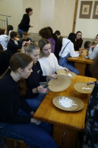 Vėliau mokiniai perėjo prie praktinės dalies – muilo liejimo. Kiekvienas galėjo pasirinkti norimą formą, spalvą ir kvapą. Vaikai noriai eksperimentavo, derino kvapus, kūrė savus „receptus“, o dirbtuvėse pasklido malonus eterinių aliejų aromatas. Tai buvo puiki proga lavinti kūrybiškumą, kruopštumą ir kantrybę.