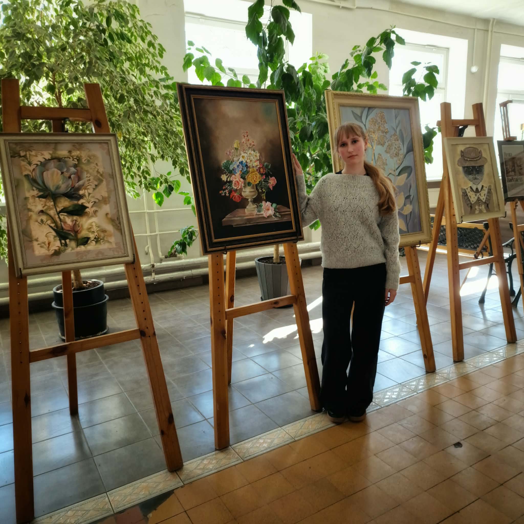 Mūsų gimnazijos bendruomenė turi ypatingą progą pasidžiaugti – atidaryta asmeninė Ii1 klasės mokinės Beatos Bačkytės tapybos darbų paroda. Tai ne tik spalvų ir formų žaismas, bet ir gilus, brandus kūrybinis kelias, kuris šiandien atsiskleidžia mums visiems. Kiekvienas Beatos darbas – tai jautrus žvilgsnis į aplinką, į žmones ir į save. Jos kūryboje susipina kruopštumas ir laisvė, o kiekviena detalė pasakoja unikalią istoriją.