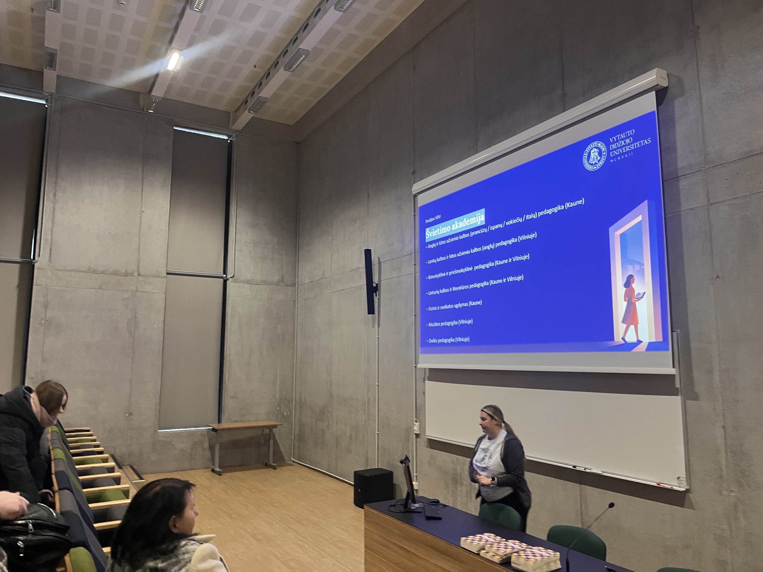 Pirmoji kelionės dalis vyko VDU Švietimo akademijoje, kur mokiniams buvo pristatytos pedagoginės studijos. Gimnazistai sužinojo apie šiuolaikinio pedagogo rengimą, studijų programas, praktikos galimybes ir iššūkius, laukiančius pasirinkusius mokytojo profesiją. Edukacijos metu mokiniai diskutavo apie lyderystę, kūrybiškumą ir pedagoginės veiklos svarbą šiandienos visuomenėje.