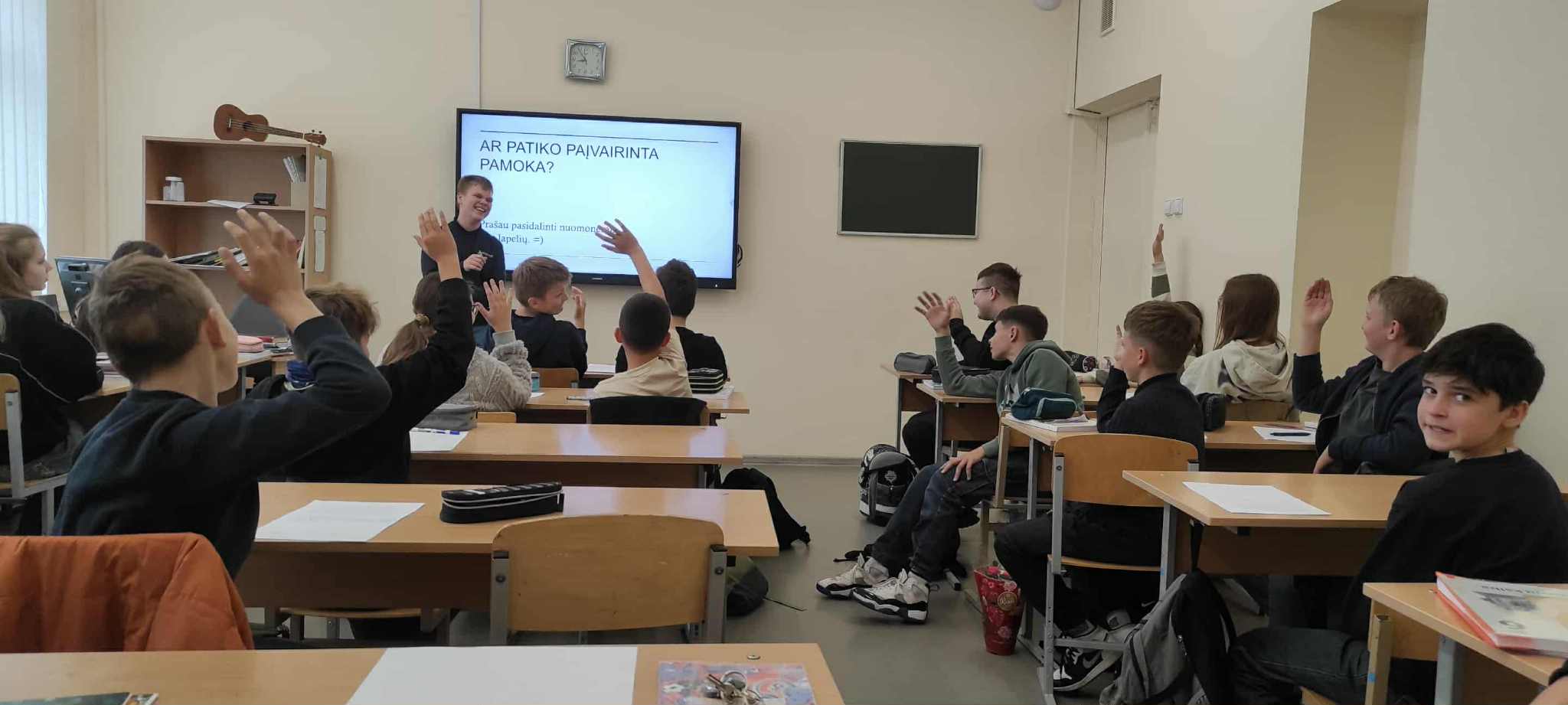 Džiaugiuosi, kad labai sėkmingai jis išlaikė klasės draugų dėmesį, sukūrė įdomių užduočių ir aptarė jas. Džiaugėsi kitokia pamoka ir mokiniai.