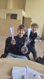 Po teorinės dalies laukė praktika – popierinių lėktuvėlių varžybos. Vaikai kartu su savo tėveliais konstravo lėktuvėlius, o vėliau išbandė, kaip jie skrenda, pritaikydami ką tik išgirstą informaciją apie aerodinamiką.