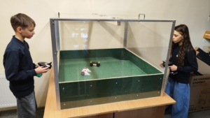 Per pamokas mokiniai ne tik konstruoja robotus, bet ir juos nuolat testuoja. Specialioje treniruočių arenoje vyksta tikros robotų kovos – mokiniai valdo savo sukurtus robotus pultais ir bando išstumti varžovą iš aikštelės. Tokios treniruotės leidžia suprasti, kas veikia gerai, o ką dar reikia patobulinti.