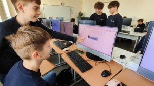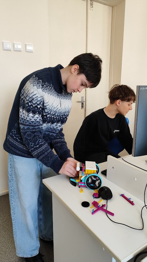 Penktokai ir devintokai ruošiasi Combat Robots rungčiai. Jie kuria kovinius robotus, kuriems svarbu greitis, manevringumas ir tvirta konstrukcija. Mokiniai patys ieško sprendimų – kaip robotą padaryti stabilesnį, kaip geriau išdėstyti detales, kad jis būtų stipresnis ir patikimesnis.
