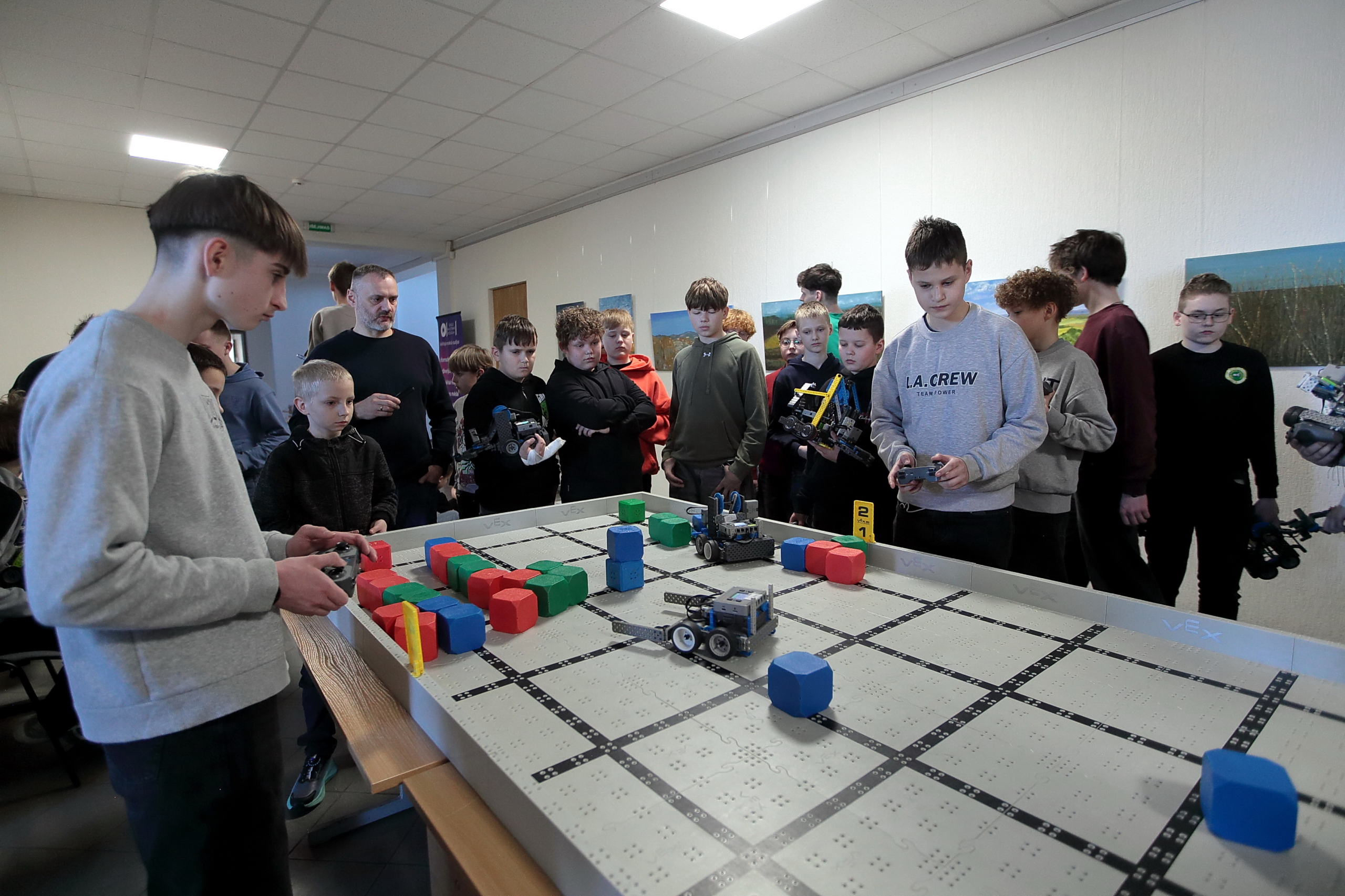 Tai buvo diena, kai technologijos tapo tiltu tarp skirtingų kartų: nuo pradinukų, dar tik besimokančių valdyti VEX IQ rinkinius, iki patyrusių inžinierių, kurių robotai stebino sudėtingais techniniais sprendimais.