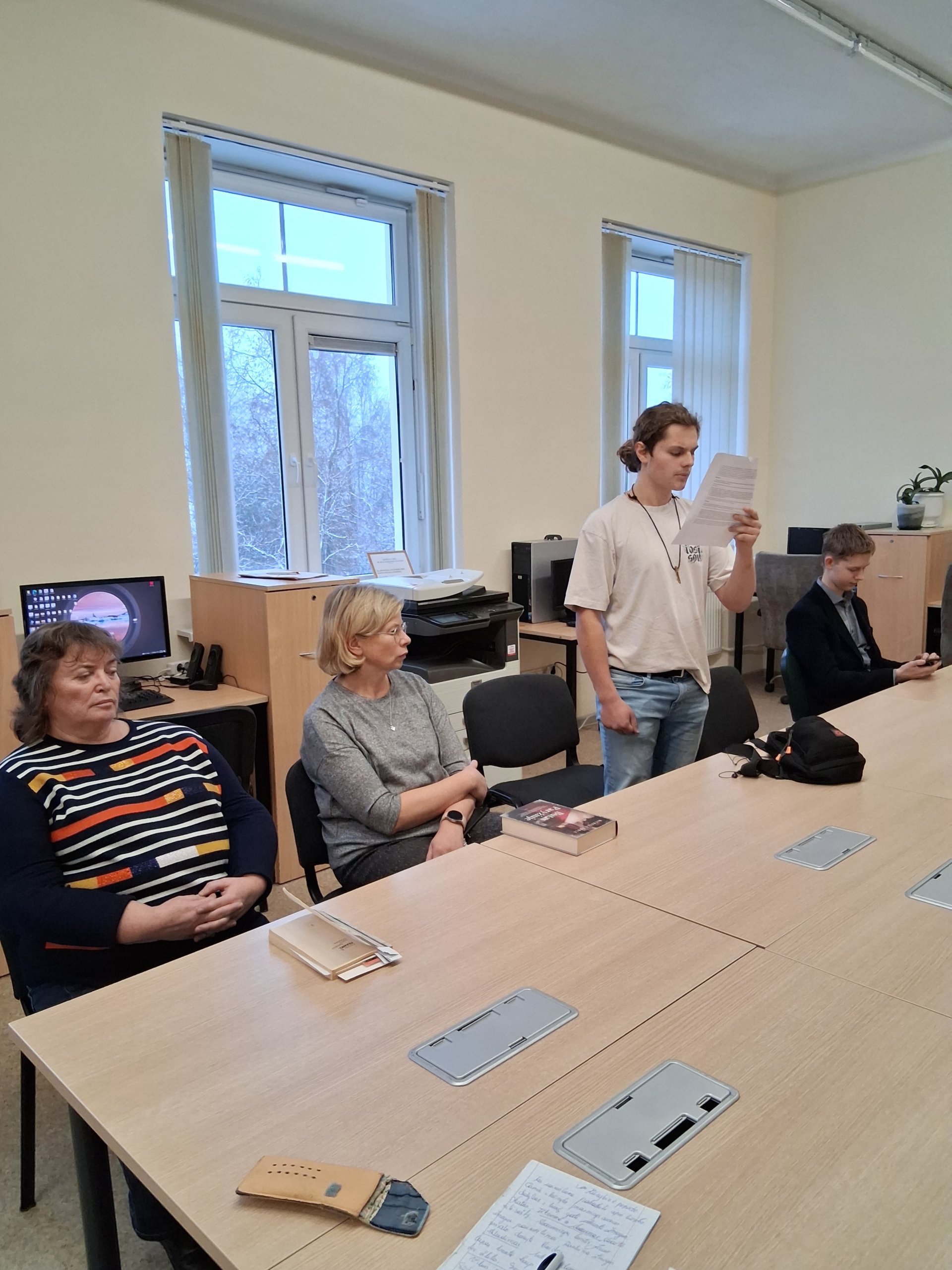 Gabija Juraitė (IIi5 klasė) skaitė eilėraštį, skirtą konkursui „Šiauliai – Lietuvių kalbos dienų sostinė 2025“, haiku iš konkurso „Haiku Palangai“ ir kt. Gimnazistas Audrius Mačiūnas (IVa klasė) pristatė ir skaitė du naujai sukurtus eilėraščius, pilnus metaforų, apmąstymų ir literatūrinių pastebėjimų.