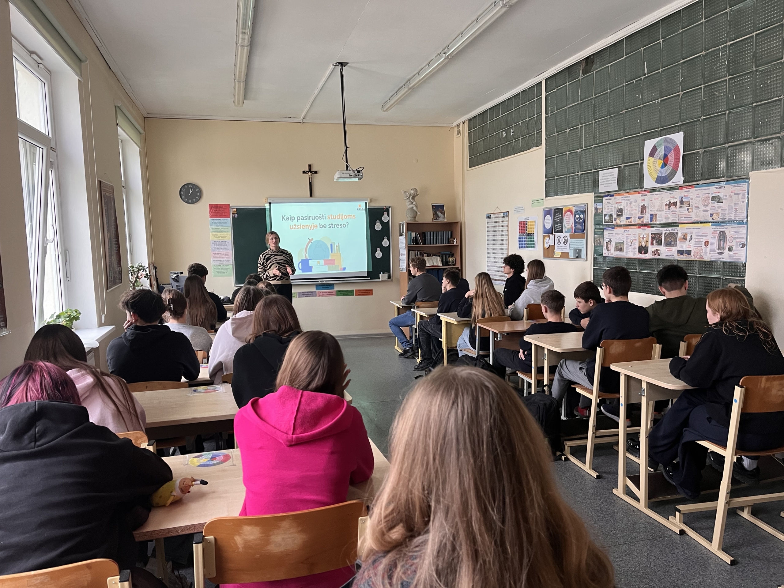 Lapkričio 19 d. mūsų gimnazijoje viešėjo Studijos užsienyje projektų vadovė Edita Petravičė, kuri gimnazistams pristatė įvairias galimybes siekti aukštojo mokslo užsienio šalyse. Susitikimo metu mokiniai turėjo progą sužinoti apie studijų sistemas, stipendijas, gyvenimo sąlygas bei karjeros perspektyvas skirtingose Europos valstybėse.